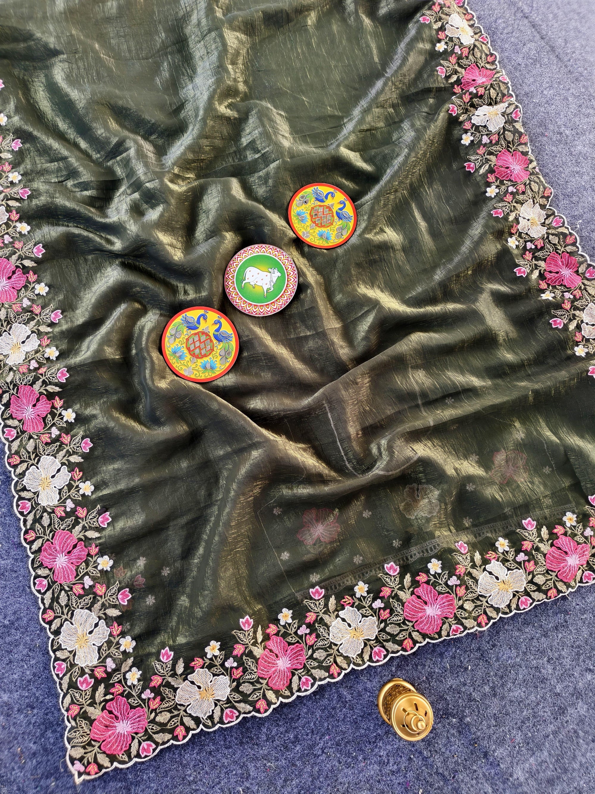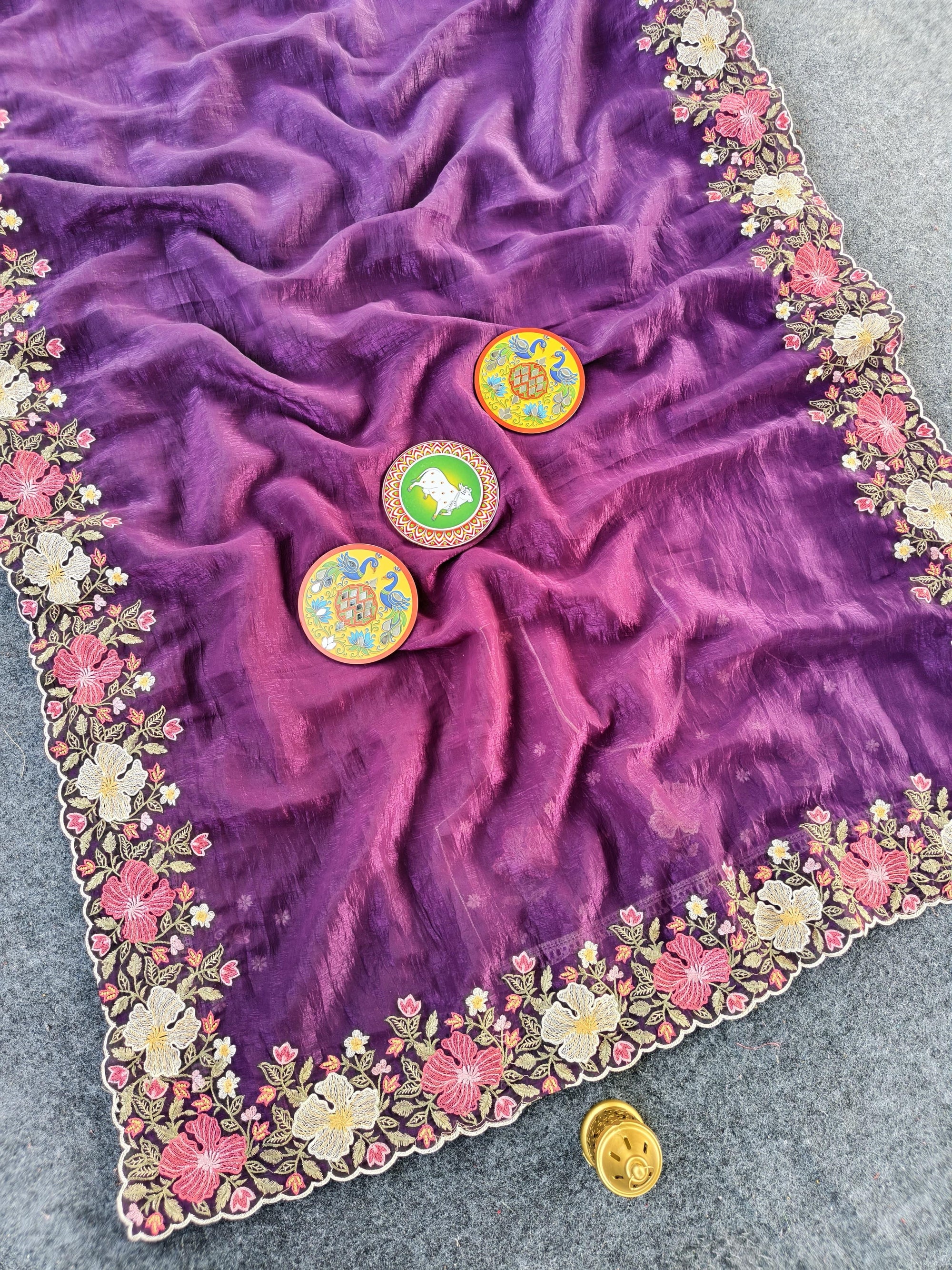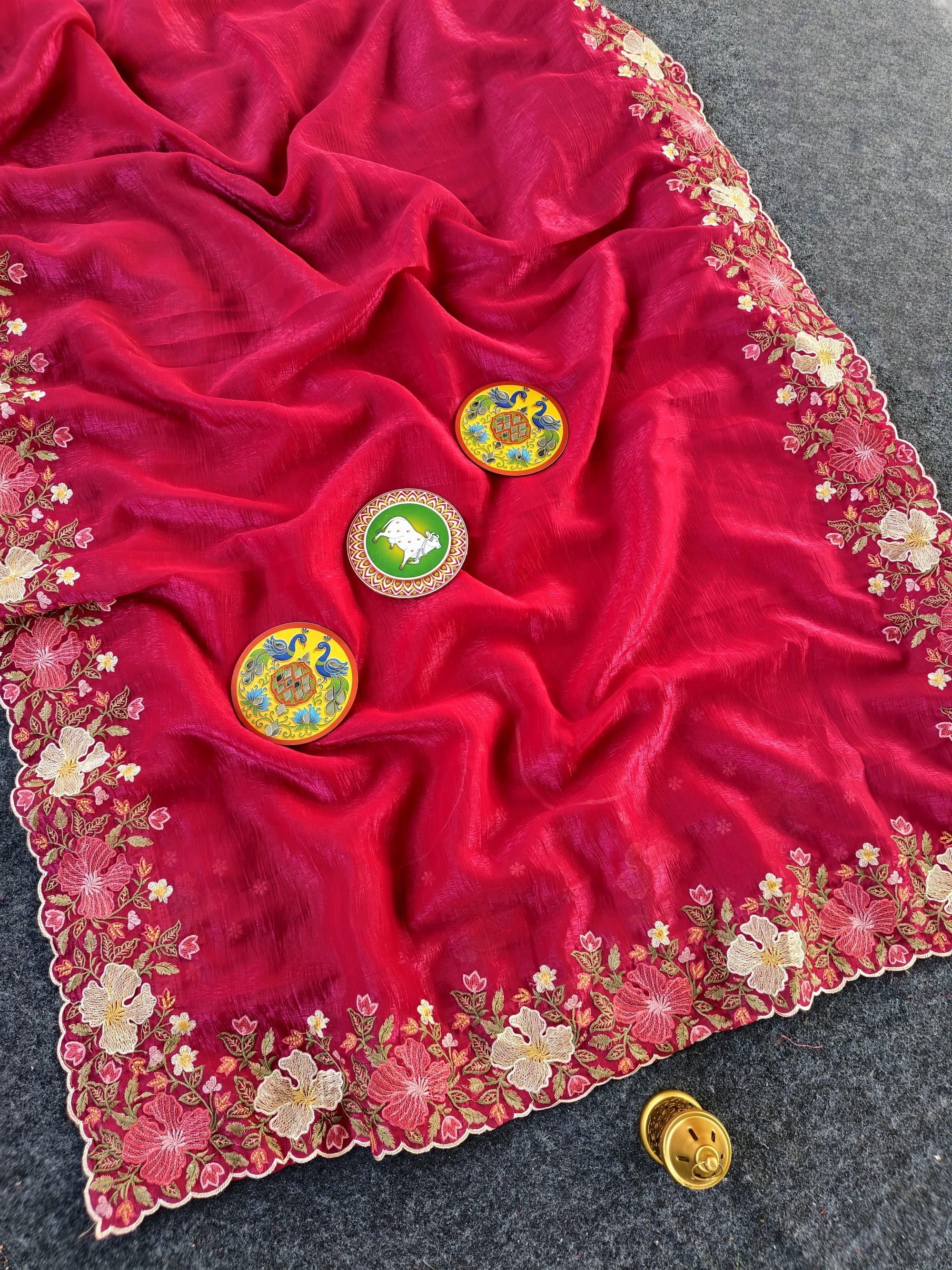 Pure Crush Chiffon Saree with Cross Stitch Embroidery