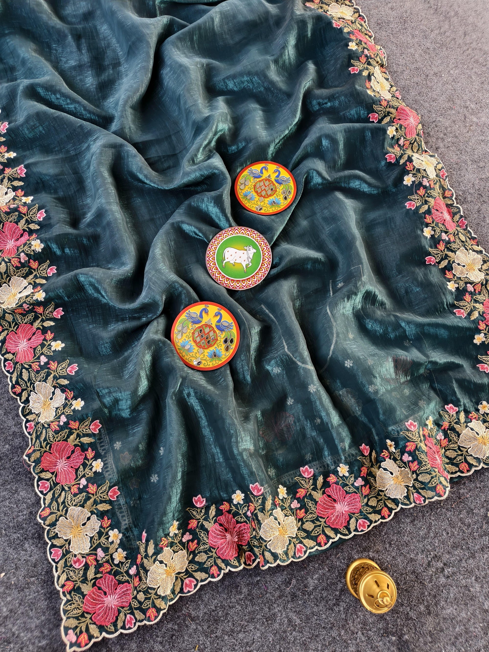 This saree is perfect for weddings, festive celebrations, special occasions, or any event where you want to make a lasting impression. The combination of soft chiffon, artistic cross stitch work, and elegant cutwork creates a timeless piece that celebrates Indian heritage with modern flair.