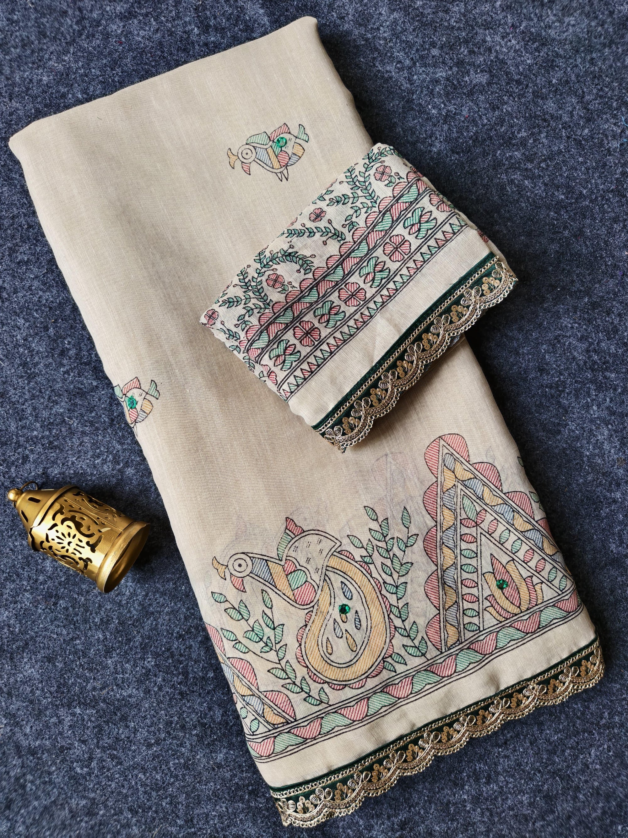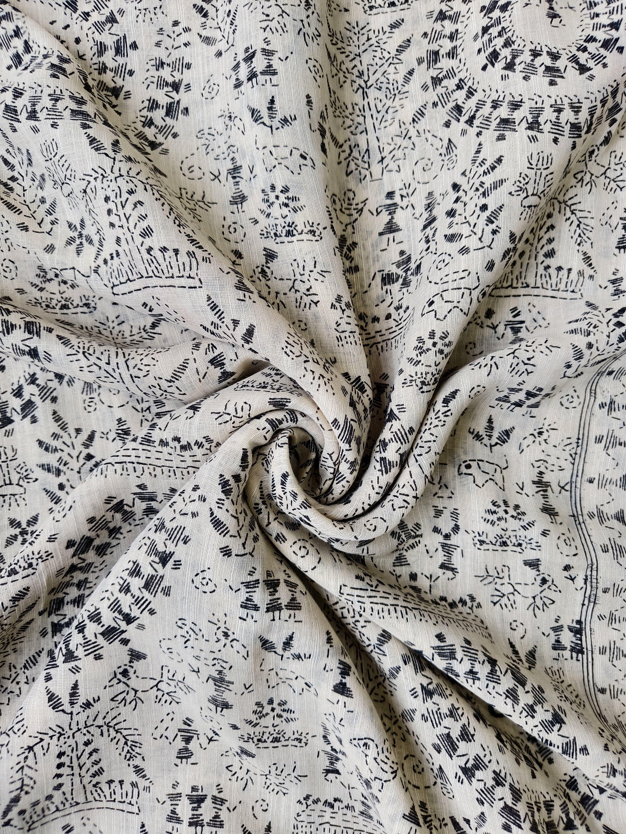 • Premium Pure Madhubani Linen Fabric