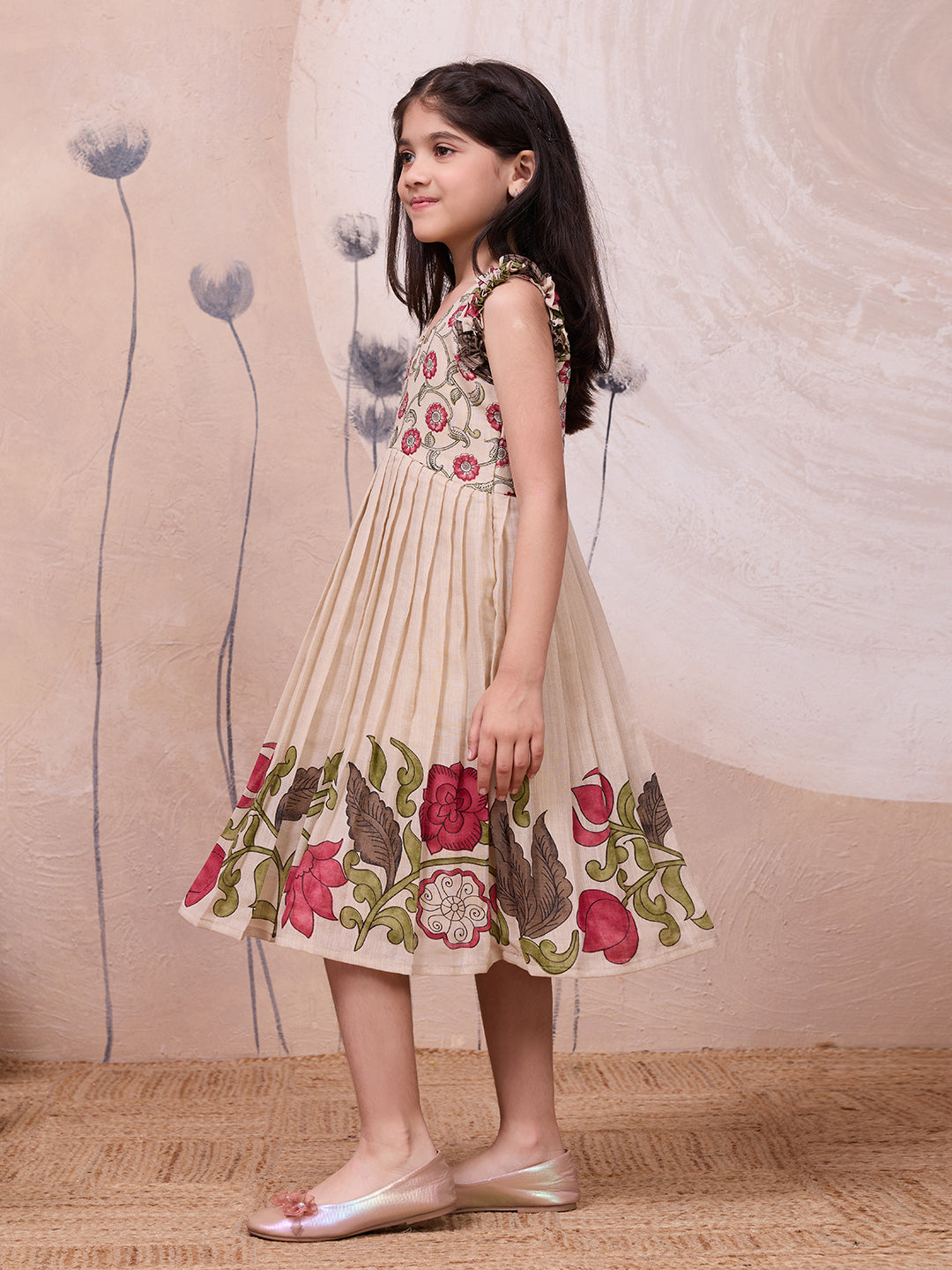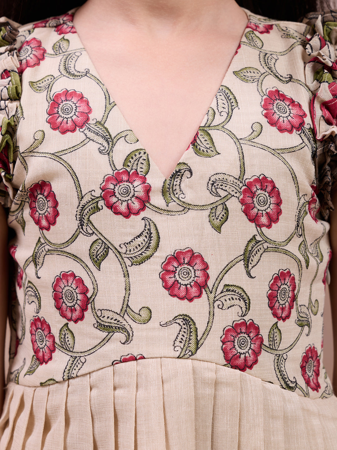 A beautifully crafted girls' middy dress featuring elegant printed details and charming ruffle sleeves—perfect for creating memorable moments.