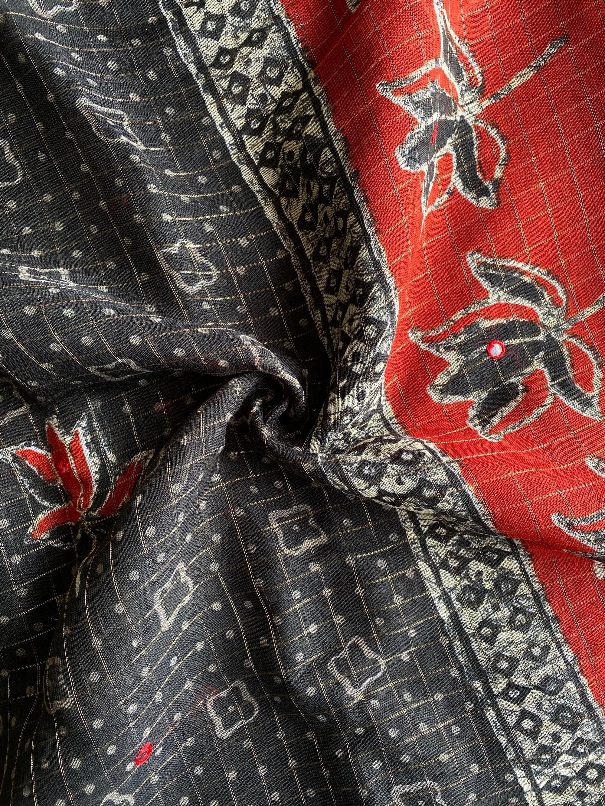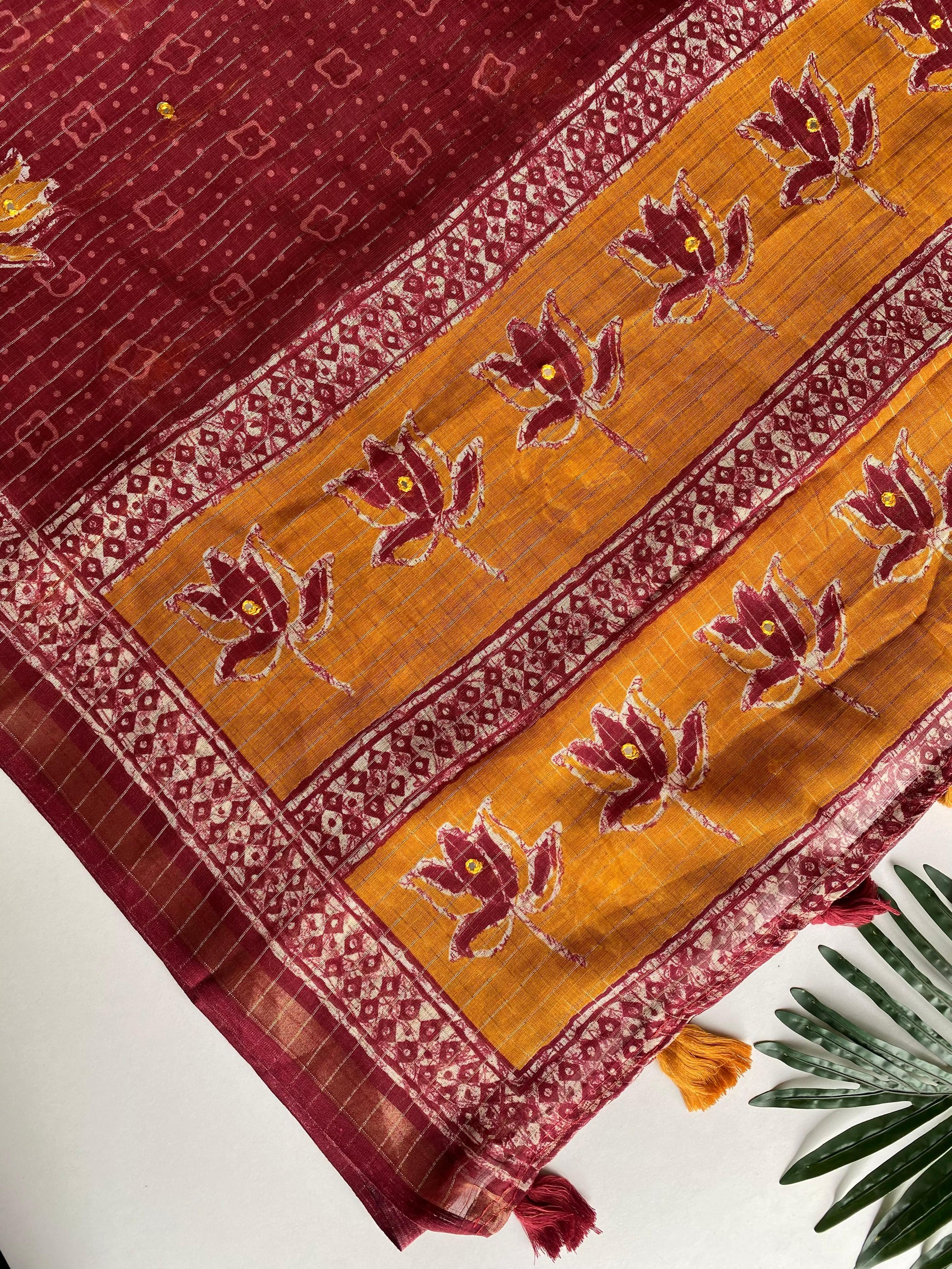Paired with a stunning contrast handwork stitched blouse, this ensemble is thoughtfully designed to complete your statement look effortlessly.