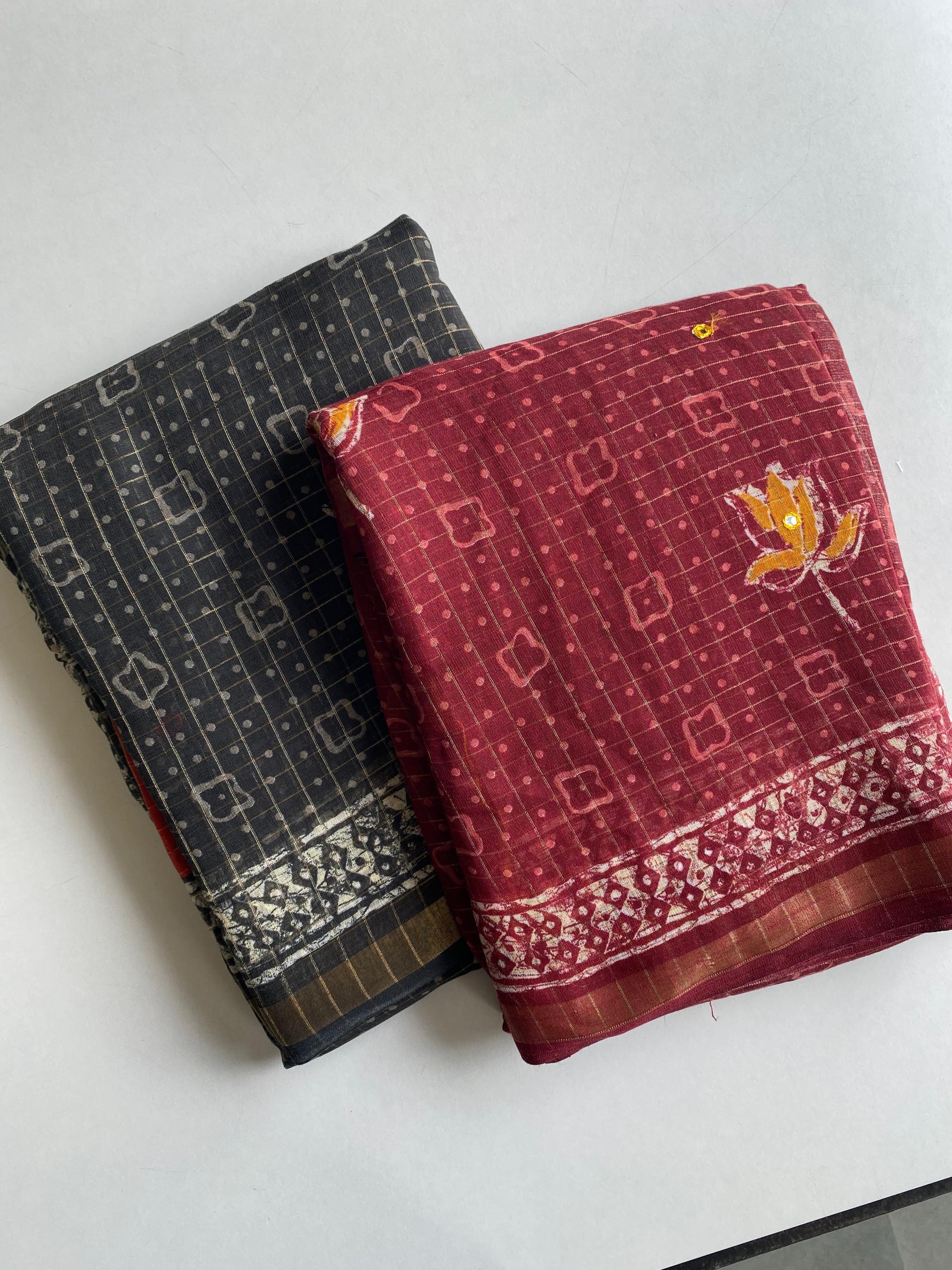 Contrast Handwork Stitched Blouse Included
